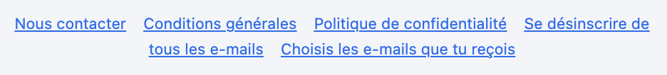 Si tu ne souhaites plus recevoir certains types d’e-mails, tu peux gérer tes préférences ou te désabonner complètement de notre liste de diffusion en utilisant le lien fourni au bas de chacune de nos communications.