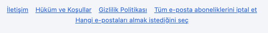 Artık bizden belirli türde e-postalar almak istemiyorsanız, tercihlerinizi yönetebilir veya e-postalarımızın alt kısmında bulunan bağlantıyı kullanarak tamamen abonelikten çıkabilirsiniz.